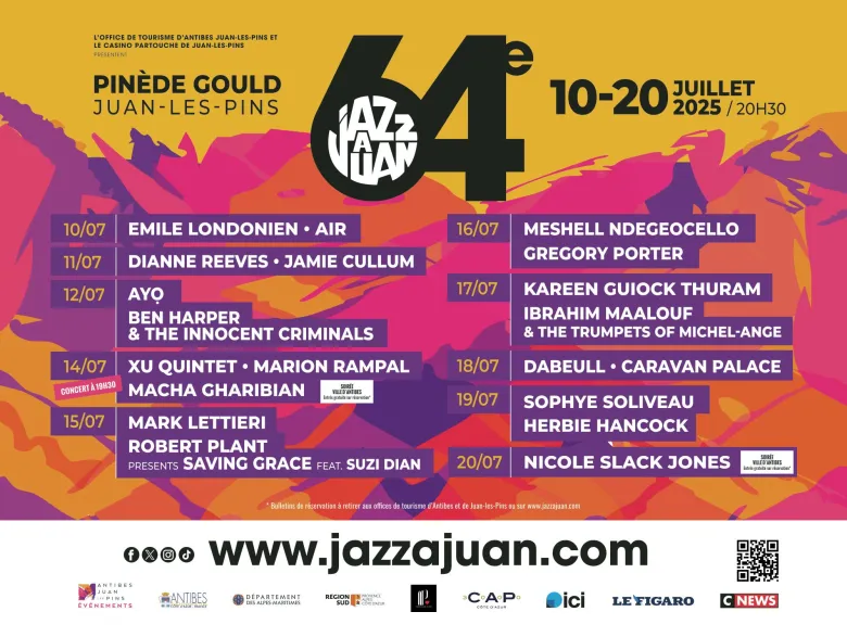 - Nicole Slack Jones : concert uniquement sur invitation (pour les clients du festival Jazz à Juan dès l’achat d’un billet : 1 billet pour un concert = 1 invitation / pour les autres, demandes à partir du 3 juin 2025 sur le site officiel)