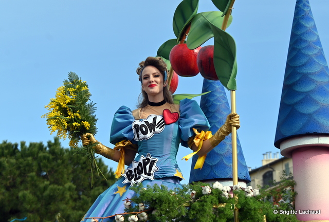 Ce mercredi 21 février 2024, les spectateurs ont pu assister à la première Bataille de fleurs à Nice (06) Alpes-Maritimes durant le Carnaval de Nice, « Roi de la pop culture » du 17 février au 3 mars.