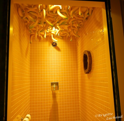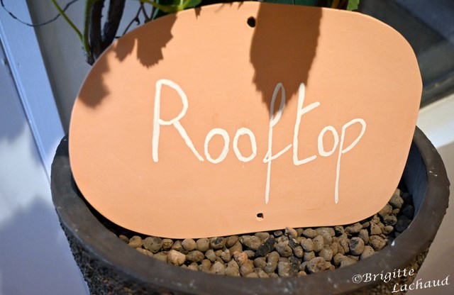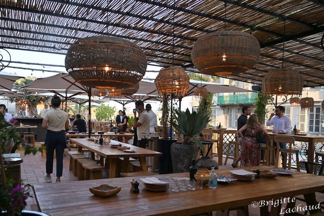 A l’étage, le Rooftop, une vaste salle de 250 mètres carrés, chaises en paille tressée, toit végétalisé agrémenté de riches plantes tropicales.