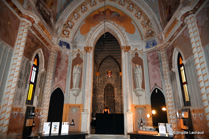du Château de Bellet s’étendent sur 12 hectares, entourant l’ancienne Chapelle néo-gothique construite en 1873. Élancée comme une fléchè dressée sur l’azur. Ses pierres blanches viennent des carrières de la Turbie, village perché sur les hauteurs de Monaco.