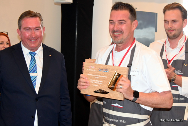 Et le grand gagnant de cette édition est le chef italien, Marco Tognon sur le super yacht,   Planet Nine de 73m, qui a surpris le jury avec son ceviche de homard bleu de Bretagne.