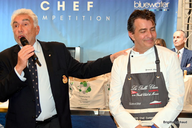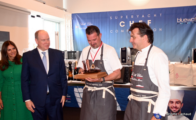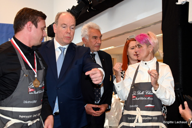 Sabrina – Marco Tognon – S.A.S.le Prince Albert II de Monaco – Yannick AllénoExclusivement réservé aux membres armateurs du Y.C.M., ce concours permet aux armateurs et à tous les passionnés de gastronomie, de voir évoluer les chefs sur des postes de travail qui s’inspirent des espaces réduits des cuisines de certains yachts.