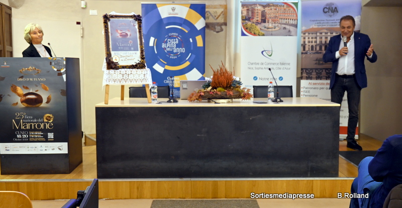 Patrizia Manassero, Maire de Cuneo, a pris la parole, mettant en avant l’importance qu’est La Foire nationale du marron, fête de la châtaigne, événement phare pour sa ville,