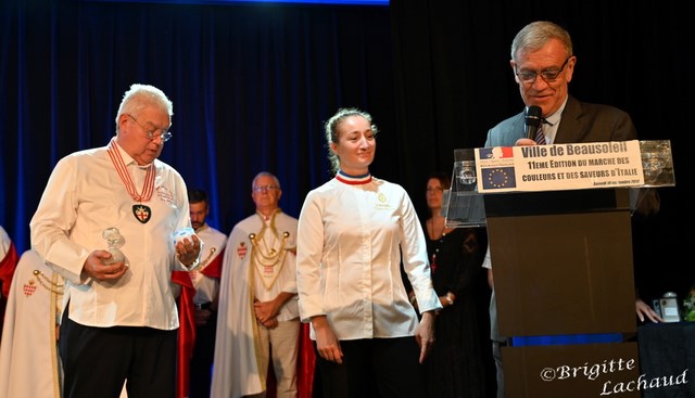 En présence de Gérard Spinelli, Maire de Beausoleil, Serge Dervieux, Président de l’Association Beausoleilloise des Amis d’Alba, grand cordon d’Or de la cuisine française, et de hauts représentants de la gastronomie, et invités..