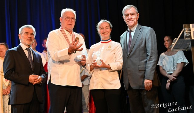 La lauréate du concours « Le Grand Cordon d’or de la cuisine française », Margot Baronchelli, Ecole hôtelière de Monaco, ainsi que Cécile Saba,