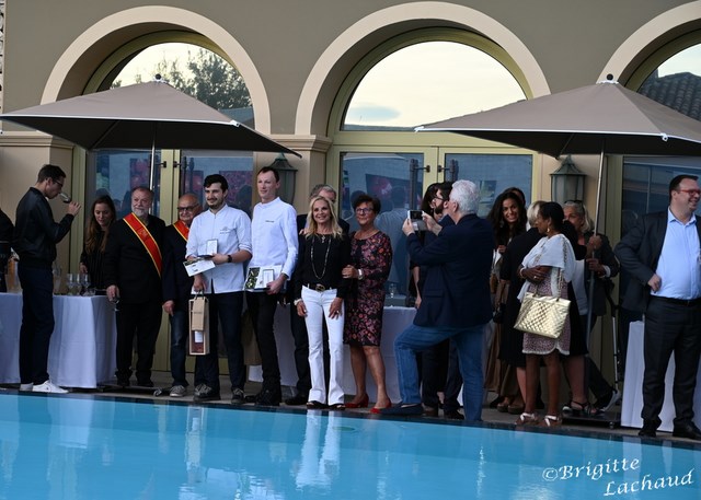 Beaucoup de monde autour de la piscine, où passionnés, professionnels, chefs, cuisiniers, pâtissiers, viticulteurs, fournisseurs, partenaires, personnalités, journalistes…Un Prix destiné à mettre en lumière des chefs qui méritent leur reconnaissance et fait suite à un « excellent déjeuner ou dîner effectué depuis le début de cette année ». (auteurs).