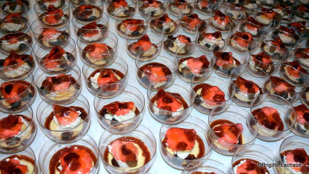 Pâtisseries, Desserts minute, Champagnes, Spiritueux, photos de famille, et le final, une superbe  pièce montée créée par la cheffe pâtissière Manon Isnard, du «  Mas de Pierre « , et une autre pièce montée préparée par Bruno Laffarge.