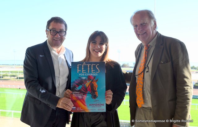 En présence de Jérome Carrus, vice-président délégué de la Société de Courses Côte d’Azur, Bruno Valentin, Conseil en communication, et Chloé Quetel, Chargée de mission Réceptif et Communication.