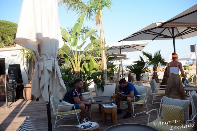 plage privée de l’Hôtel Le Grand Hôtel ***** face à l’hôtel, une superbe vue des îles de Lérins, cadre agréable, large façade sur la baie de Cannes au plus proche de la mer : l’ambiance reposante des vagues prend le pas sur l’atmosphère rythmée du bar et du restaurant, avec vue sur la jetée, pour tester une cuisine de saison aux accents méditerranéennes, généreuse et savoureuse.