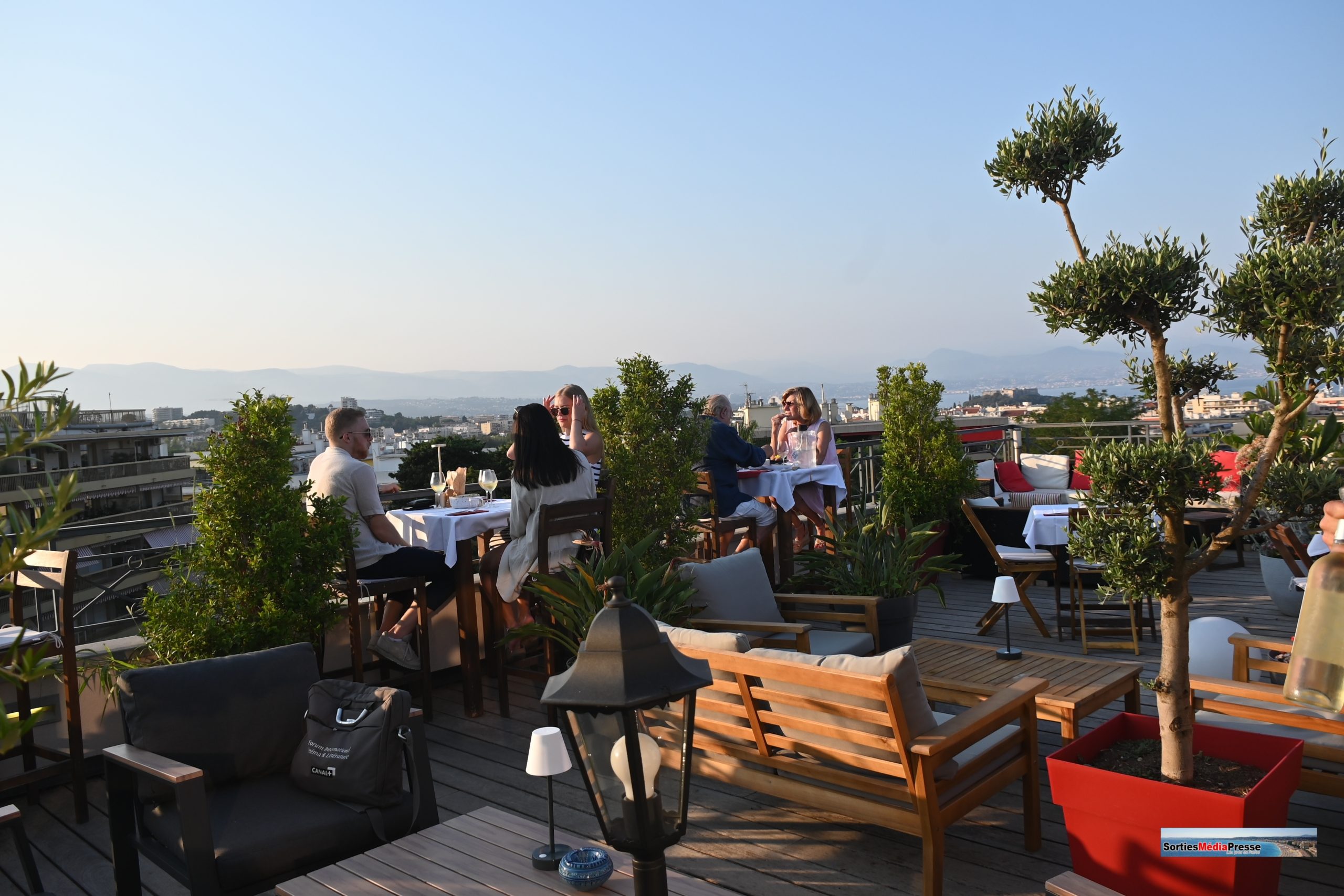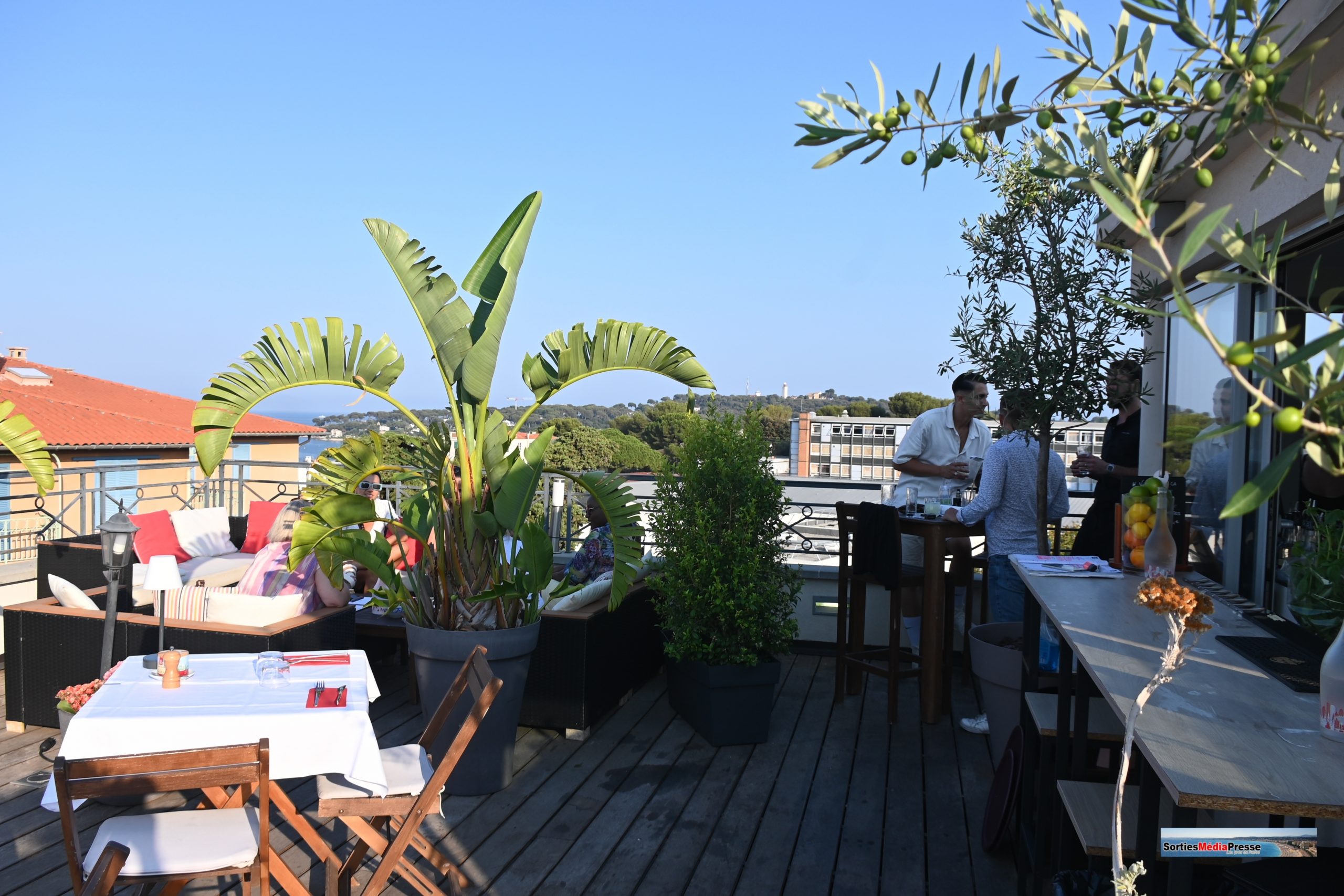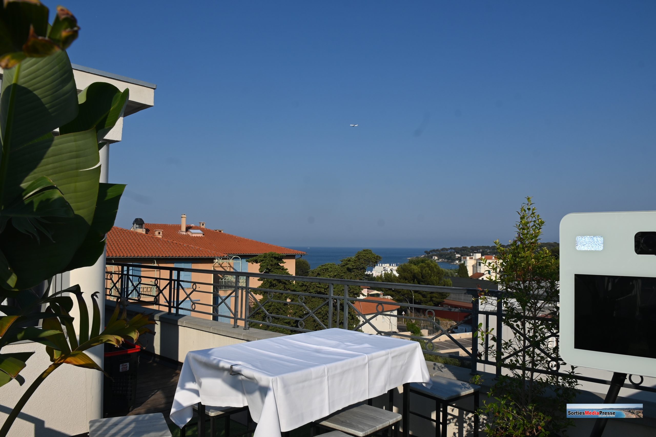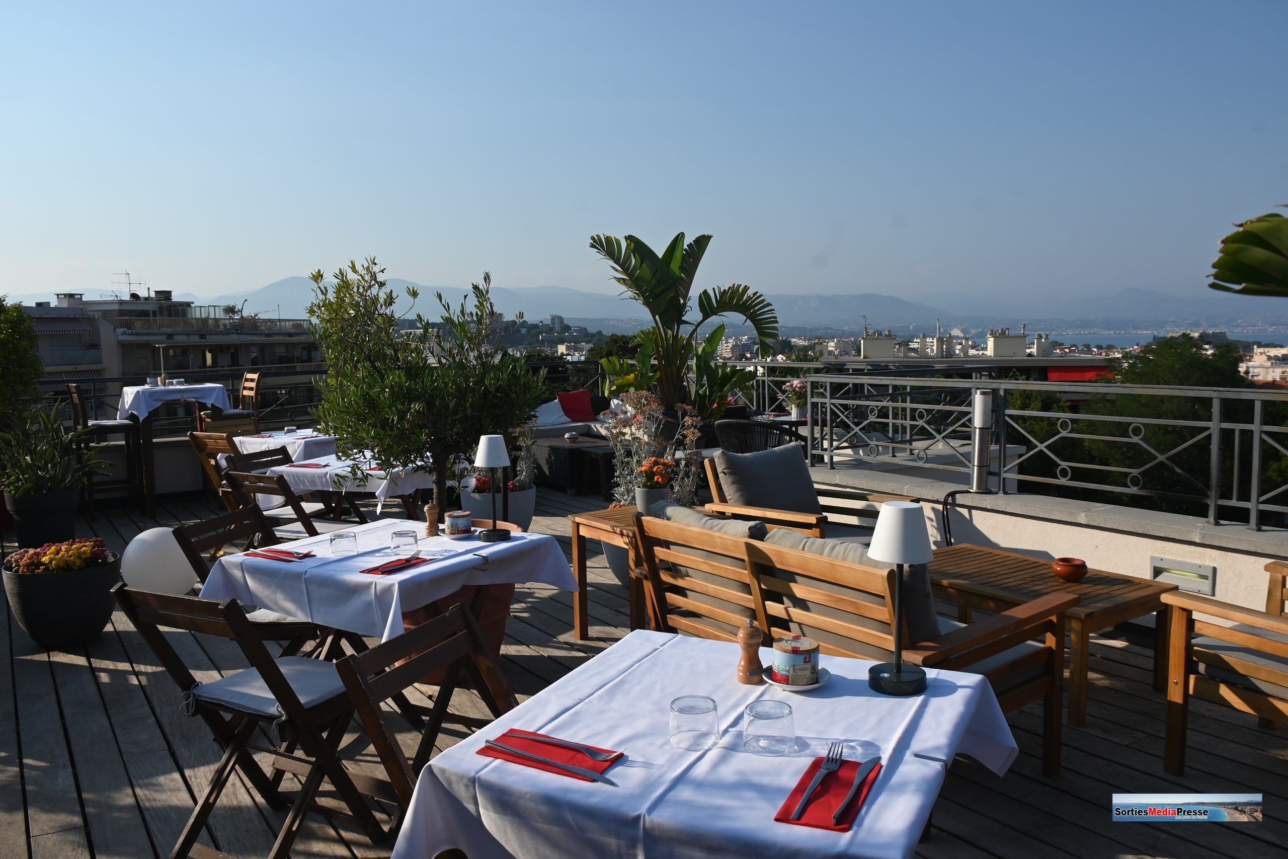 Élégamment niché sur le toit de l’hôtel Best Western *** avec une vue imprenable sur le Cap d’Antibes, sur la ville entière, mais aussi sur le magnifique coucher de soleil azuréen avec la mer en toile de fond.