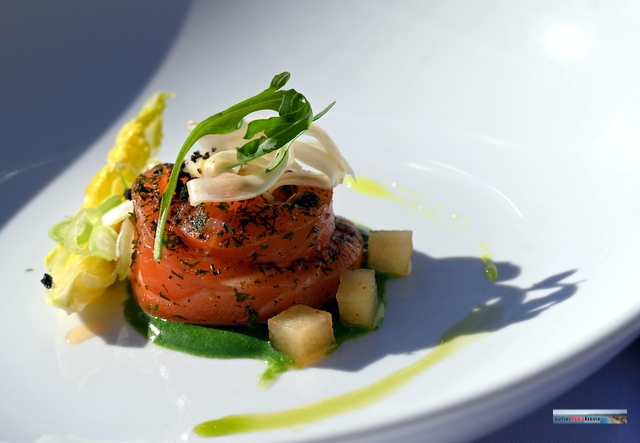Bien placé, au cœur de la commune, avec une grande terrasse face à la mer, ce restaurant élégant de 75 couverts (l’hiver) a confié sa cuisine à un jeune napolitain, Gianluca Marano, qui a fait ses armes sur la Côte almafitaine, puis à CannesCabécou Affiné, Salade de Roquette Noix & Piments d’Espelette. C’est nouveau, au lieu et place du « Magellan », voici « La Plage Blanche », c’est-à-dire la plage du Château de Théoule, car le nouveau groupe français propriétaire, « Millésime », compte relancer cette belle plage rénovée avec son château transformé en hôtel haut de gamme de 42 suites avec vue sur mer.