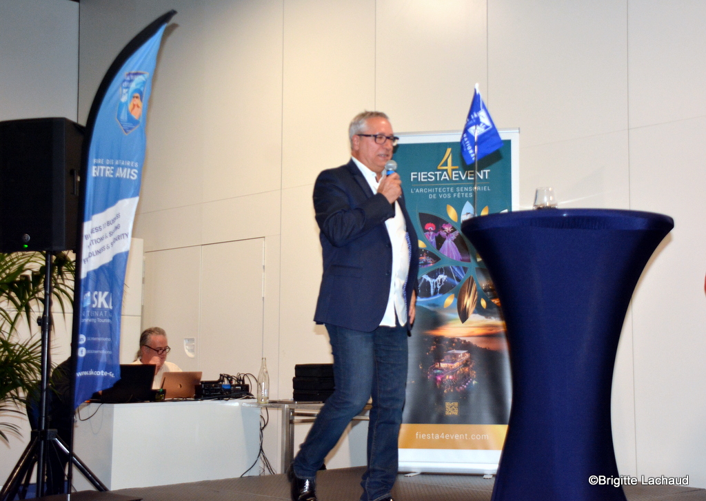 La soirée se poursuivait dans une autre salle du Martinez au décor élégant, au son d’une musique du trio Mash’up, et comme le veut la tradition, le toast de l’amitié en 3 langues, Français, Italien, Espagnol, étaient prononcés par les présidents :