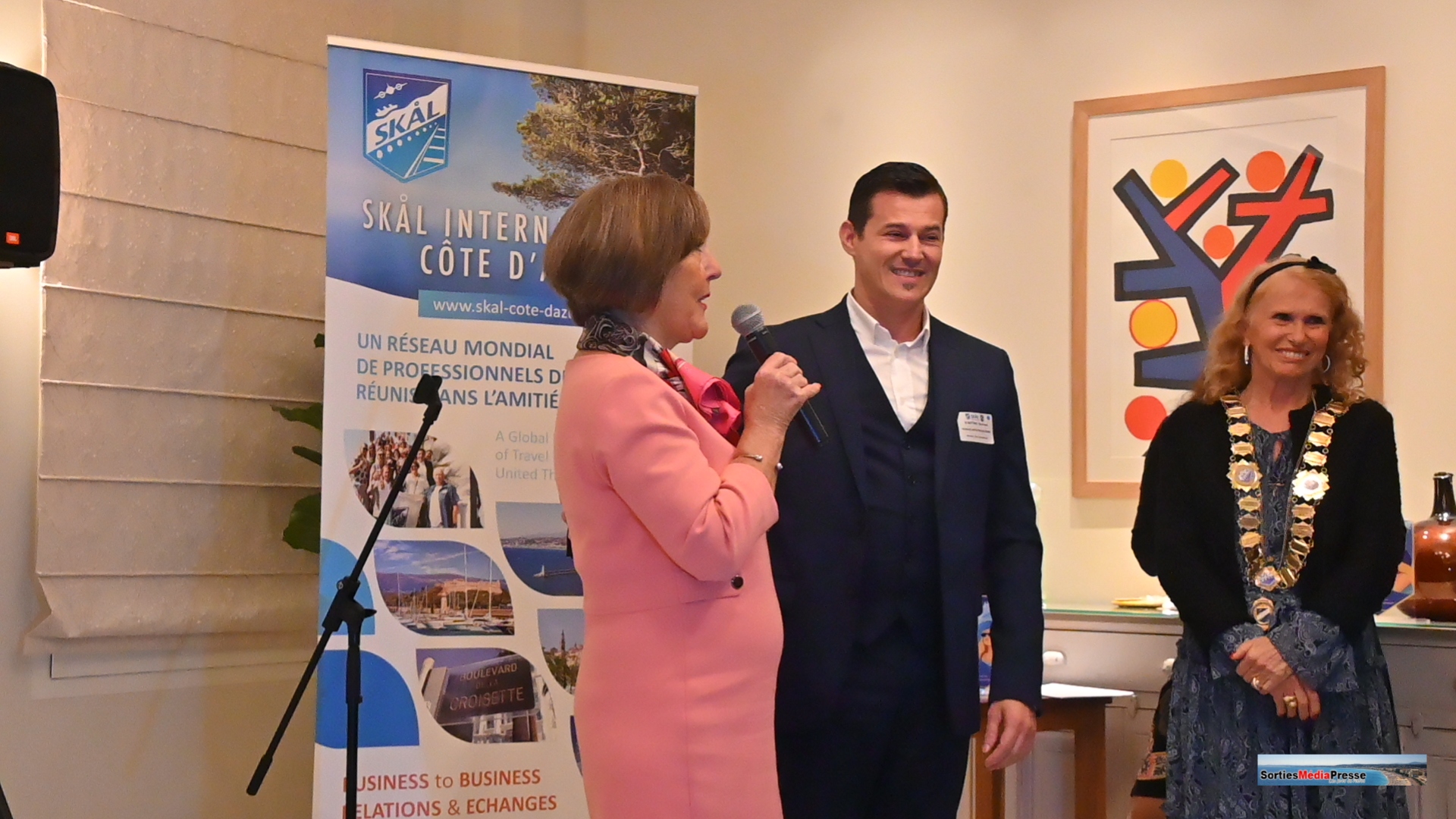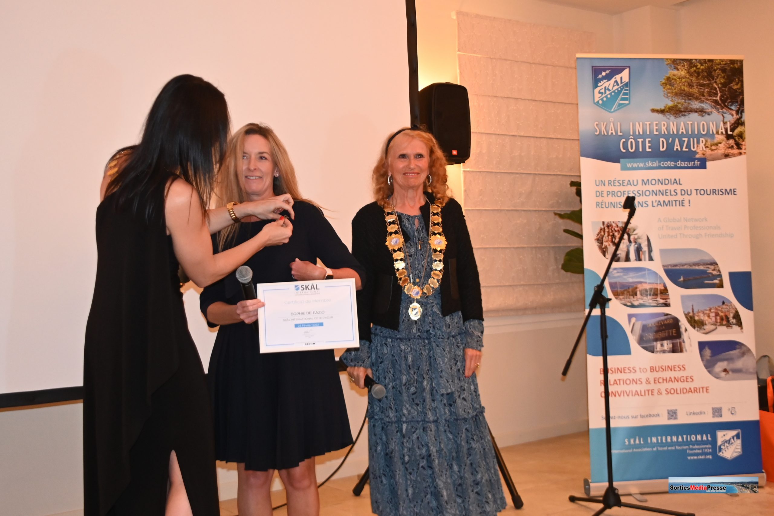 Burcin Turkkan, recevait le fanion du Skål International Côte d’azur des mains de la présidente Nicolle Martin. Le Skål international est présent aujourd’hui dans 102 pays, avec 317 clubs et plus de 12 290 membres.