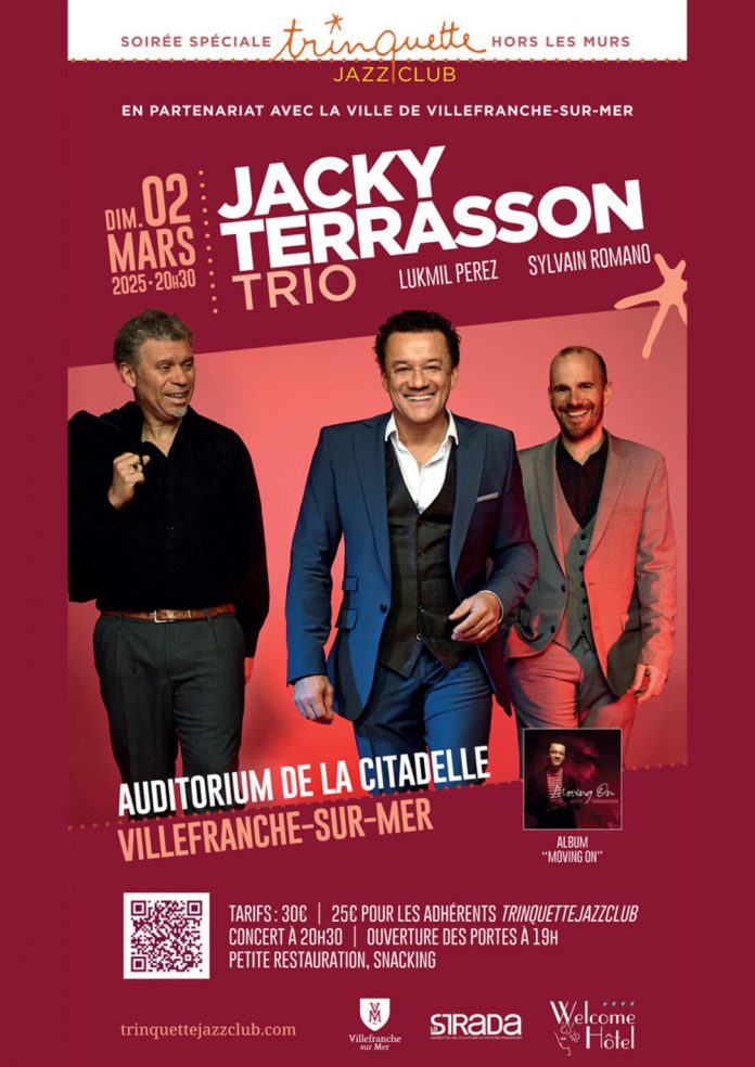 sera en concert unique pour toute la Côte d’Azur, le 2 mars 2025, dans l’auditorium de la citadelle de Villefranche-sur-Mer, Jacky Terrasson Trio !