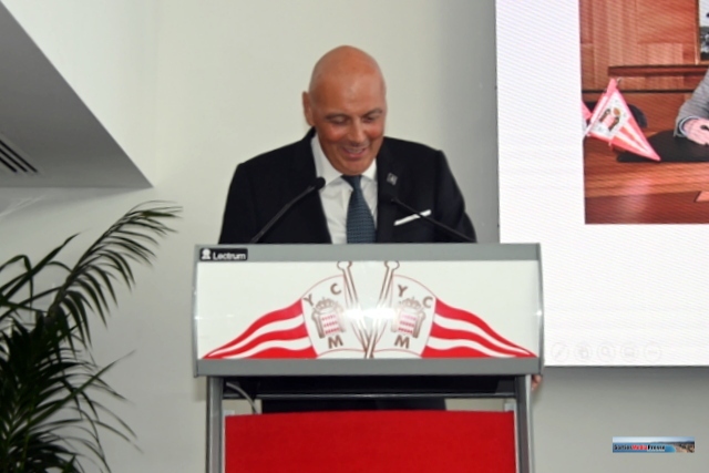 En présence de : Amiral Luigi Sinapi, Directeur de l’OHI, Bernard d’Alessandri, Secrétaire et Directeur Général du Yacht Club de Monaco, le Prince Charles Bourbon des deux-Siciles, Son Excellence Monsieur Giulio Alaimo, Ambassadeur d’Italie à Monaco, Madame