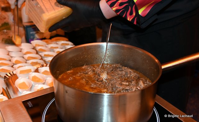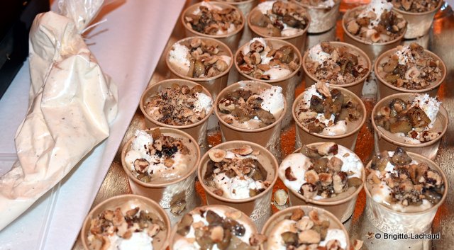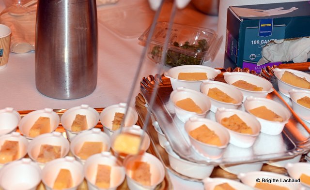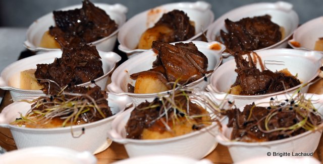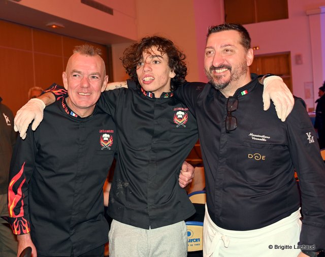 champion d’Europe écailler 2019 – Stick de polenta piémontaise et daube de bœuf effiloché – Chef Aurélien Nourry, restaurant le Millésime à Nice – Velouté de châtaignes à la truffe avec Espuma aux bourgeons de sapin – Chef Ermanno Geria, restaurant
