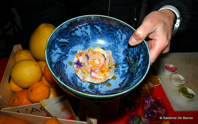 Le soir à partir de 17h sur la place centrale, face à la patinoire, avant les repas gastronomiques, (de l’amuse-bouche au dessert au prix unique de 55€), des animations culinaires étaient proposées par des Chefs de cuisine et de pâtisserie étoilés, ou renommés de la région, parrainé par Victor Delpierre, Champion du monde « Barista Cocktails »,