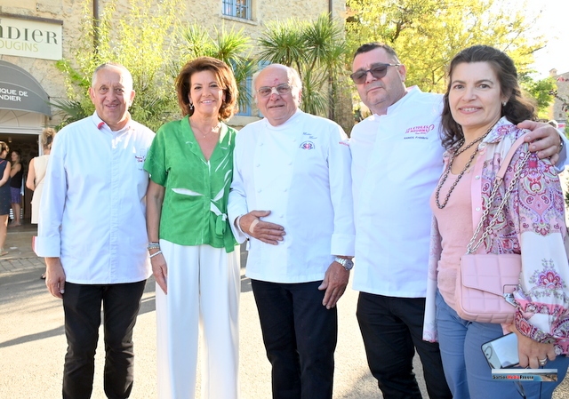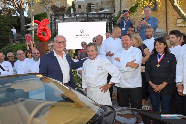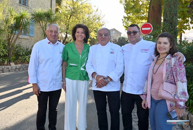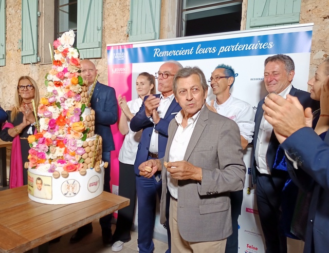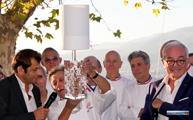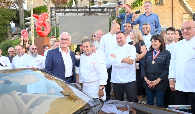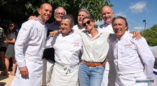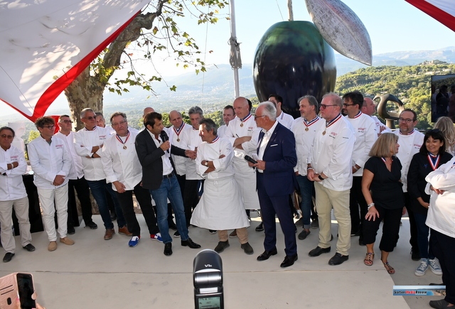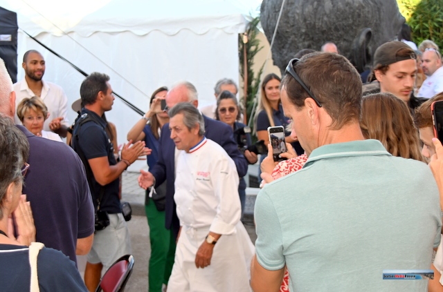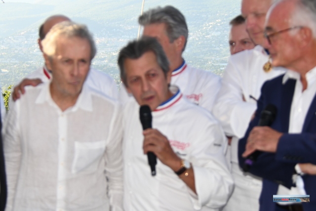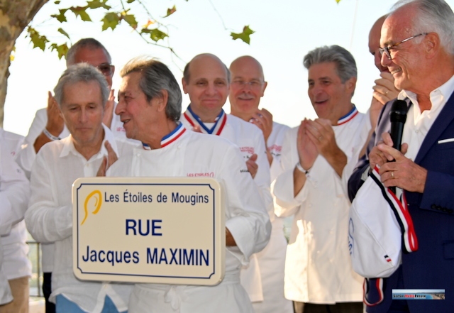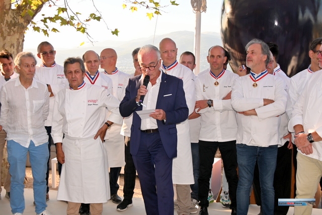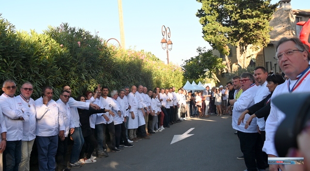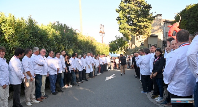 Haie d’honneur pour l’arrivée de Jacques Maximin avec tous les Chefs et invités réunis avec remise de cadeaux, en présence de nombreux élus
