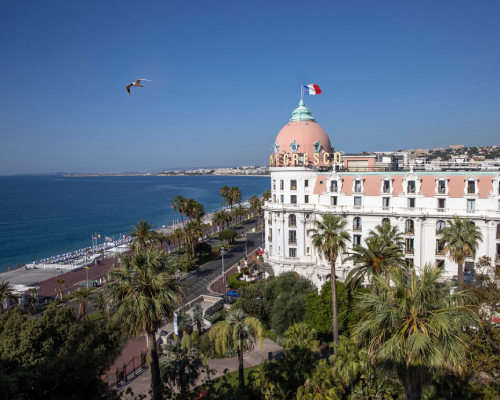 C’est face à la Baie des Anges, Promenade des Anglais, un des endroits les plus iconiques de la Côte d’Azur, dans un cadre prestigieux et emblématique, l’Hôtel Negresco de Luxe ***** légende de Nice (06) Alpes Maritimes et de la Côte d’Azur depuis plus d’un siècle.