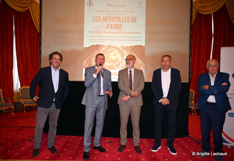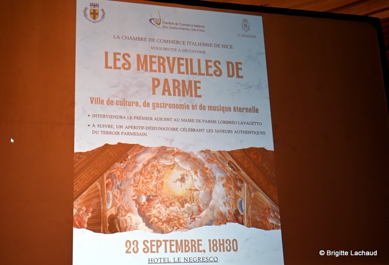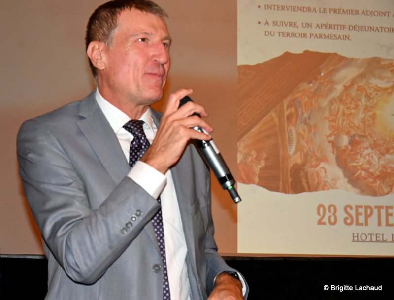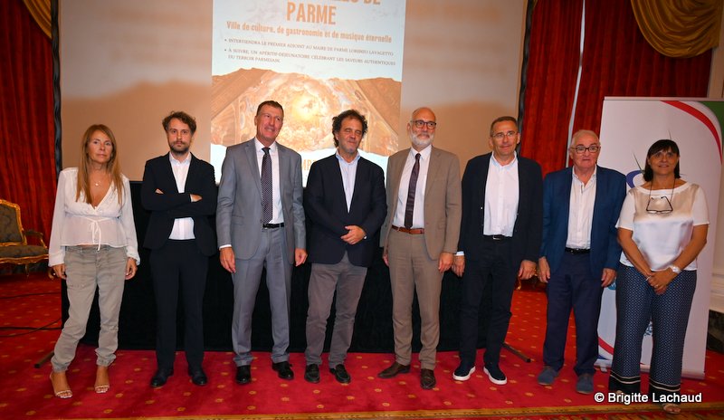 découvrir Parme, cité interculturelle, ses atouts touristiques, gastronomiques, avec son jambon, ses champignons, ses truffes et sa route des vins, et musique éternelle. En présence de Emilio Lolli Ceroni, Consul Général d’Italie à Nice, Lorenzo Lavagetto, adjoint au Maire de Parme,