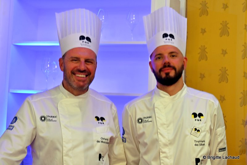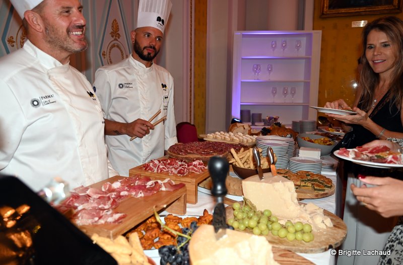 La soirée s’est conclue par un buffet d’exception, préparé par le Consorzio Parma Quality Restaurant, mettant à l’honneur les saveurs emblématiques du territoire parmigiano : prosciutto di Parma, culatello, strolghino, et bien sûr l’incontournable Parmigiano Reggiano.
