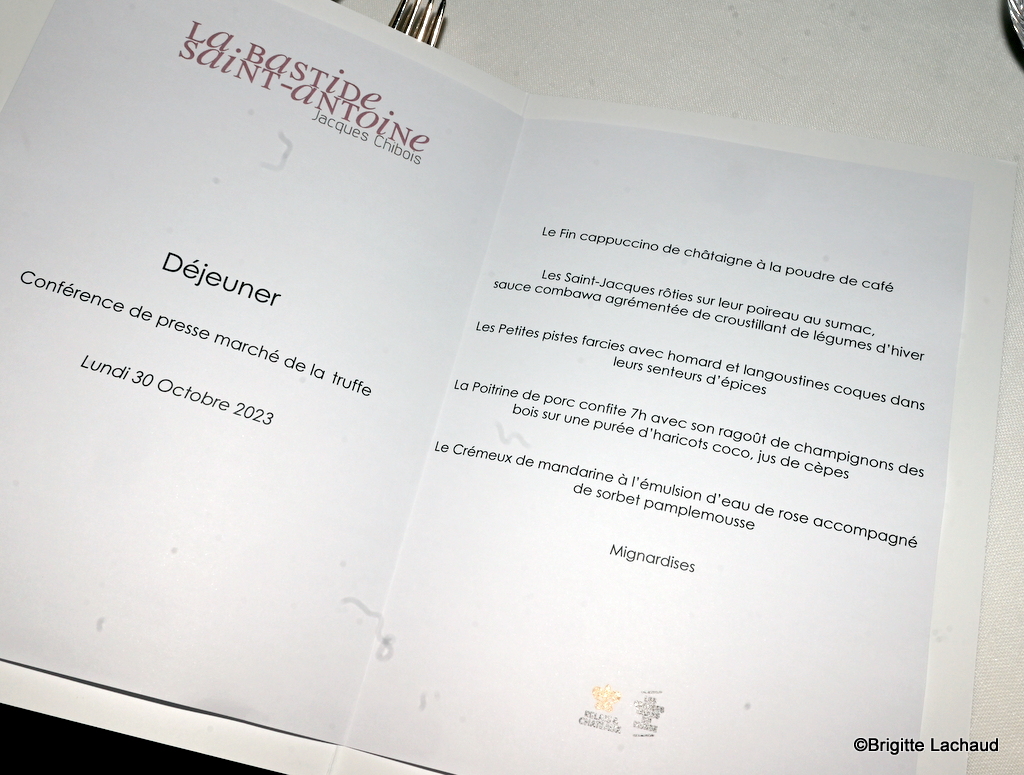 Le 28e Marché de la truffe, organisé par la mairie de Grasse et le Syndicat des producteurs de truffes noires des Alpes-Maritimes, avec le concours de Jacques Chibois, où la conférence s’est tenue, là, où l’on retrouve son écrin grassois : le vaste parc aux oliviers centenaires de la Bastide Saint-Antoine, Relais & châteaux *****