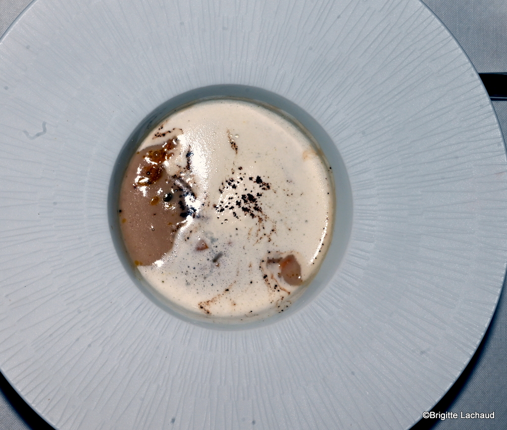 Lors des agapes qui ont suivi, Jacques Chibois chef et maître de Maison, et Laurent Barberot, son talentueux chef exécutif, ont fait découvrir quelques-unes des créations automnales de la nouvelle carte.