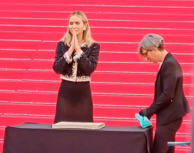 Ce dimanche 16 octobre 2022, Emily Blunt a laissé ses empreintes de mains, apposées sur une plaque d’argile, pour rejoindre le célèbre » Chemin des Étoiles « , de Cannes qui en compte près de 450 autres telles que, Meryl Streep, Quentin Tarantino, Cameron Diaz, Sylvester Stallone, Tim Burton, Clint Eastwood, Sharon Stone, Alain Delon, Jane Fonda, Morgan Freeman, Monica Bellucci, Nicolas Cage, Sophia Loren ou encore Diane Kruger…