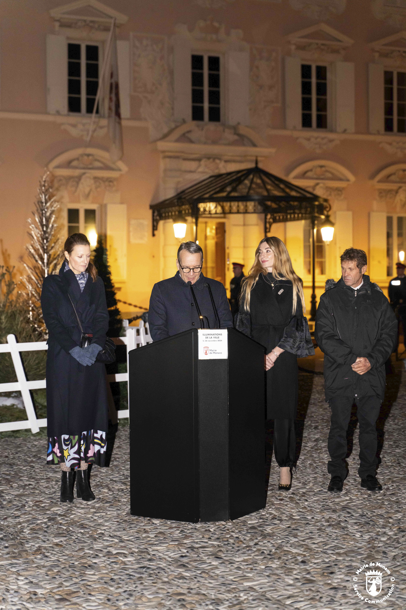 des illuminations en présence de Stéphane Valéri, président délégué de la Société des Bains de Mer (SBM), Didier Guillaume, Ministre d’État, Thomas Brezzo, président du Conseil national, Camille Gottlieb, Mélanie Antoinette De Massy, du Maire Georges Marsan, des membres du Conseil Communal, et des plus hautes instances de la Principauté. Un moment symbolique qui a débuté avec un discours du Maire, honoré d’être présent sur le parvis du Palais Princier, pour cette mise en lumière de la Ville :