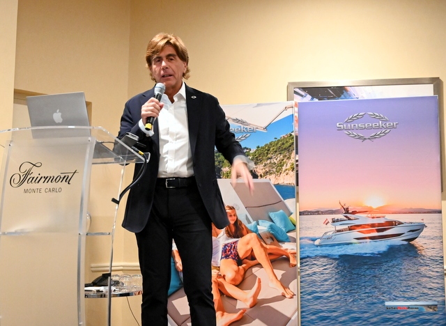 Retour pour Sunseeker à l’hôtel Fairmont ***** accueilli par le PDG Andrea Frabetti qui révéle les détails des derniers modules du chantier: L’Ocean 182, qui est en production, et le lancement du concept de l‘Ocean 156.