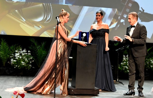 Les Prix spéciaux attribués à la soirée de gala du Grimaldi Forum dirigé par Ezio Greggio: le Monte-Carlo Film Festival Award, Maggie Civantos, Sabrina Impacciatore et Andrea Morricone.