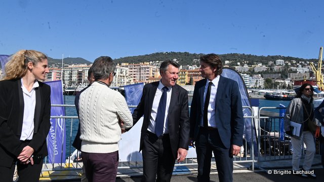 L’inauguration s’est faite en présence de Christian Estrosi, Maire de Nice, Pierrick Garenne, Commissaire Général Adjoint en charge de la Communication et du Marketing chez Grand Pavois Organisation, organisateur du salon, Rudy Salles, adjoint au maire, Gérard Horlz,