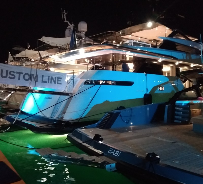 Les plus grands yachts à moteur de 25 à 48 mètres étaient au Vieux Port, AB Yachts, Amer Yachts, Baglietto, Benetti, Cantiere delle Marche, CCN, Maiora… Egalement la partie à flots, l’espace Tender sur la Traversante, ponton flottant reliant les deux côtés du Vieux Port dont la partie centrale s’ouvre pour laisser sortir les bateaux pour les essais en mer.